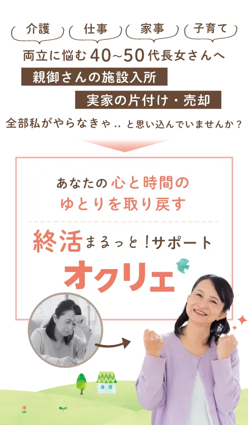 もしご家族の健康状態の悪化から不動産売却や施設入居等を検討する必要がある方は終活まるっとサポート!オクリエにご相談されることをお奨めいたします。